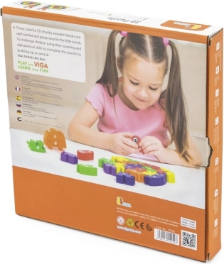 Vsak košček sestavljanke je označen s črko, kar pomaga pri učenju abecede in razvoju kognitivnih sposobnosti.