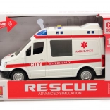 Realistični plastični reševalni avtomobil na baterije bo razveselil vsakega malega reševalca. Po pritisku na gumbe na strehi sveti in oddaja zvoke, ima odpirajoča se vrata in kompaktne dimenzije, idealne za otroške roke.