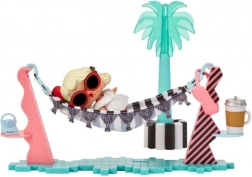 Vstopi v svet L.O.L. Surprise s setom »Počitniški chill – Leading Baby«. Odpri škatlico in odkrij več kot 10 čudovitih presenečenj, vključno s punčko, sprostitveno visečo mrežo, palmo in tematskimi dodatki. Embalažo zlahka spremeniš v igralno okolje, zato lahko takoj uživaš v počitnicah sanj.