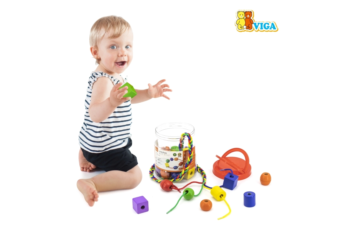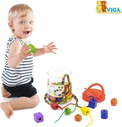 Navlačenje podpira pravilen prijem, koordinacijo oko–roka in zbranost. Idealno za predšolske otroke in zgodnje učenje.