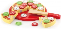 Pica je razdeljena na kose in dopolnjena z lopatko/nožkom, zato lahko otroci režejo in strežejo kot v pravi piceriji.