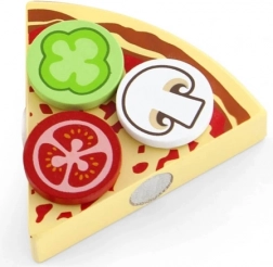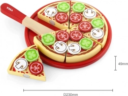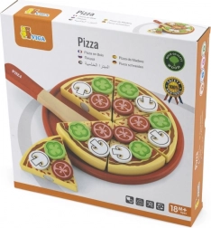 V kompletu je pica s premerom približno 23 cm, servirni pladenj in lopatka/nožek za realistično rezanje. Zahvaljujoč odstranljivim dodatkom si otroci urijo prijem in domišljijo, starši pa cenijo enostavno vzdrževanje in dolgo življenjsko dobo lesa.