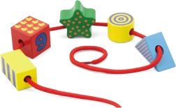 Ta lesena nizalka otrokom ponuja neskončne možnosti ustvarjanja: nizanje kot kroglice, gradnja stolpov in hišk ter razvrščanje po barvah in oblikah. Veliki deli (pribl. 4 cm) so enostavni za držanje in idealni za prve motorične vaje.