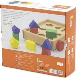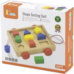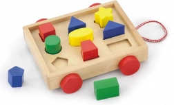 Lesena vstavljanka - voziček ponuja otrokom zabavno in poučno pot do izboljšanja fine motorike. Del seta je voziček velikosti 24,5 x 22 x 7 cm ter 9 barvitih kock različnih oblik, ki jih je treba pravilno vstaviti. Ta voziček otroke spodbuja k igri, medtem ko se učijo prepoznavati oblike.