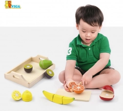 Igrača vsebuje čudovito barvito sadje, ki otroke hitro pritegne in jim omogoča realistično posnemanje kuhinjskih opravil.
