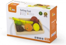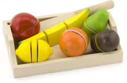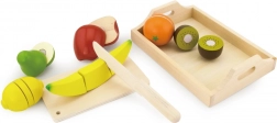 Sadje in nož sta narejena iz naravnega lesa, kar zagotavlja varnost in vzdržljivost pri igri.