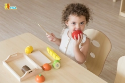 Zahvaljujoč ježku je sadje mogoče z enim gibom prerezati in znova združiti, kar spodbuja razvoj fine motorike.