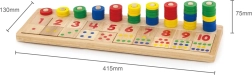 Ta lesena igrača ni le zabava, temveč tudi odlično izobraževalno orodje. Otroci se lahko igrajo z oštevilčenimi ploščicami in barvnimi obročki, ki podpirajo vizualne in otipne učne spretnosti.