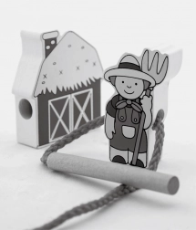 Zabava gre z roko v roki z učenjem, saj se otrok med igro na zabaven način seznanja z življenjem na kmetiji in živalmi, ki tam živijo. Vsi deli so izdelani iz lakiranega lesa in pobarvani z nestrupenimi barvami, kar zagotavlja varno in veselo igro.