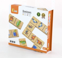 Očarljivo leseno domino z motivi domačih živalic ponuja ure zabave in učenja za vašega malčka. Vsak košček prinaša barvite ilustracije, ki pomagajo razvijati zmožnost prepoznavanja vzorcev in fino motoriko. Zahvaljujoč praktični škatlici je shranjevanje in prenašanje igre enostavno in priročno.