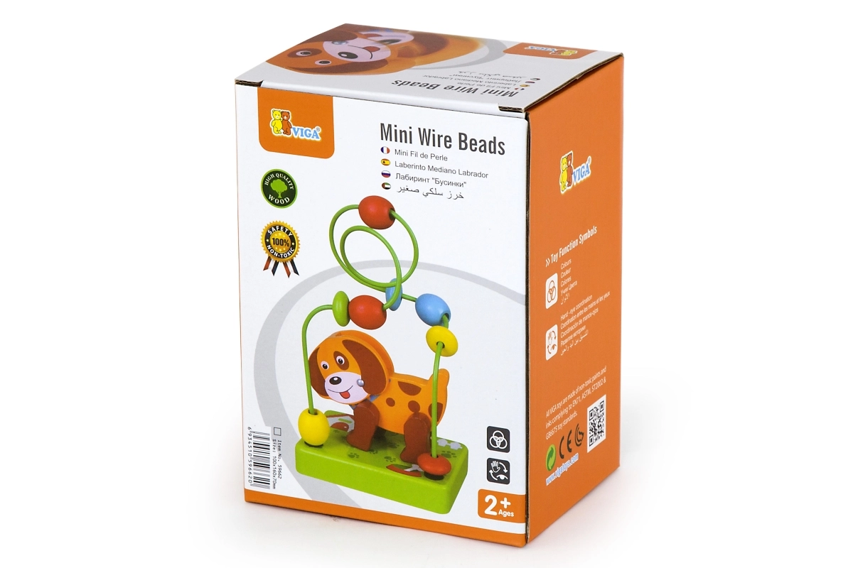 Leseni labirint s kužkom je idealen za razvoj fine motorike ter koordinacije roke in očesa pri otrocih. Ta labirint z neonskimi kroglicami na kovinskih žičkah zagotavlja ure zabave ter uči otroke osredotočenosti in potrpežljivosti. Z barvito osnovo in veselimi motivi kužka je igrača ne le praktična, temveč tudi estetsko privlačna.