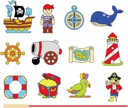 Figure pirata, ladje, zaklada ali krmila spodbujajo domišljijo in spreminjajo učenje skozi igro v privlačno pustolovščino.