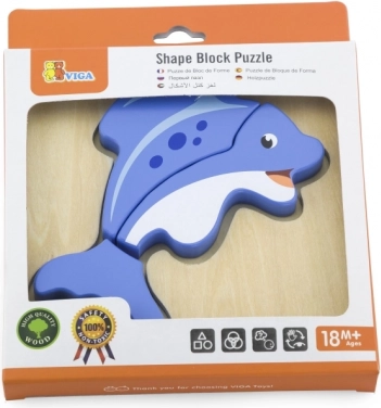 Ta lesena vstavljanka s modrim delfinom je odlična izbira za prve sestavljanke. Zahvaljujoč robustni leseni podlagi in dobro prilegajočim se koščkom si otroci zlahka urijo koordinacijo oko–roka in potrpežljivost. Igrača je zasnovana z mislijo na varnost in dolgo življenjsko dobo.