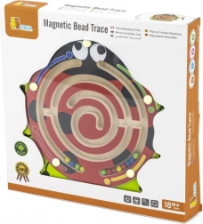 Ta kakovosten leseni magnetni labirint pikapolonica otrokom ponuja barvit svet odkrivanja. S priloženim magnetnim pisalom premikajo kroglice po premišljeno zasnovanih poteh, s čimer naravno krepijo prijem, vadijo koordinacijo oko–roka in izboljšujejo koncentracijo. Trdna lesena konstrukcija in zaprt dizajn zagotavljata varno igro brez prostih delov.