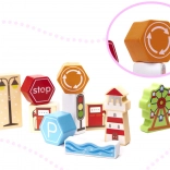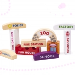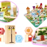 Poživite ustvarjalnost vašega otroka s tem izjemno barvitim lesenim gradbenim kompletom, ki vsebuje 120 kosov, idealnih za ustvarjanje mestnega okolja. Celoten komplet vključuje stavbe, kot so bolnišnica, tovarna, hotel, bencinska črpalka in gasilska postaja, kar otrokom omogoča raziskovanje in razvijanje njihove domišljije.