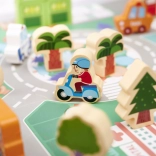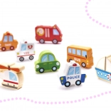 Podpira razvoj fine motorike, logičnega mišljenja in prepoznavanja barv. Z vključitvijo živali, kot so slon, žirafa, zebra, lev in krokodil, je zabava obogatena tudi z elementi živalskega vrta. Raznolikost prevoznih sredstev, kot so policija, gasilci, rešilci, taksi, avtobus, osebni avtomobil, kolo in čoln, zagotavlja, da otroku nikoli ne bo dolgčas.