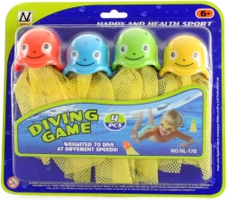 Komplet potapljaških hobotnic je idealen pripomoček za otroke, ki se učijo potapljati in izboljšujejo samozavest v vodi. Zahvaljujoč različnim številkam na vsaki hobotnici je mogoče enostavno ustvarjati točkovne igre, tekmovanja in preproste vaje koordinacije ter zadrževanja sape. Barvite izvedbe omogočajo dobro vidljivost pod vodo.