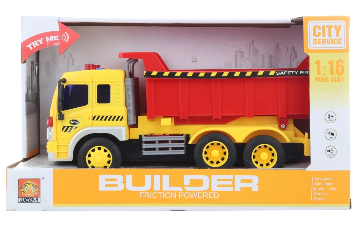 To otroško prekucno vozilo ponuja veliko zabave zahvaljujoč svetlobnim in zvočnim učinkom, ki se aktivirajo s pritiskom na gumbe. Zaradi velikosti približno 27 × 12 cm se udobno drži in je idealno za igro na preprogi ali v otroški sobi. Baterije so priložene, zato lahko takoj odpeljete „na gradbišče“.