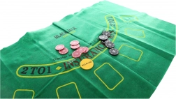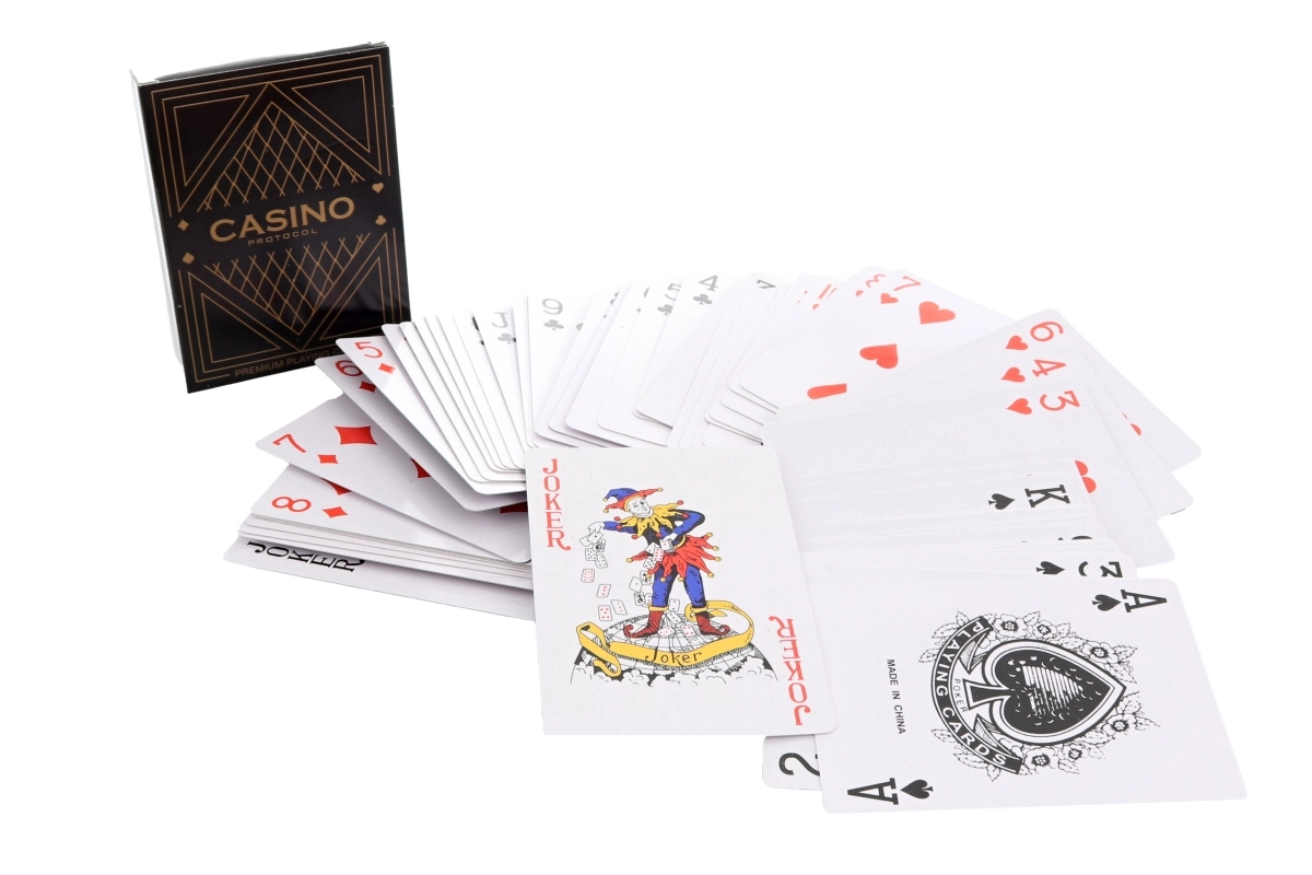 Del kompleta so kakovostne igralne karte, set žetonov za udobno stavljenje, mehka podloga za gladko deljenje ter pregledna navodila, s katerimi boste hitro osvojili pravila in različice igre.
