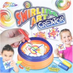 Ta zabavni ustvarjalni komplet otrokom ponuja edinstven način za ustvarjanje barvitih umetnin. Zahvaljujoč preprostemu principu vrtenja in kapljanja barv nastajajo impresivne spirale in abstraktni učinki, ki navdušijo.