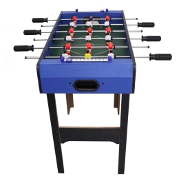 Namizni nogomet z odporno konstrukcijo in modrim igriščem prinaša hitro in napeto igro, kadarkoli si zaželite. Stabilne lesene noge in kakovostne kovinske palice z nedrsečimi ročaji zagotavljajo natančno vodenje igralcev in udobno upravljanje.