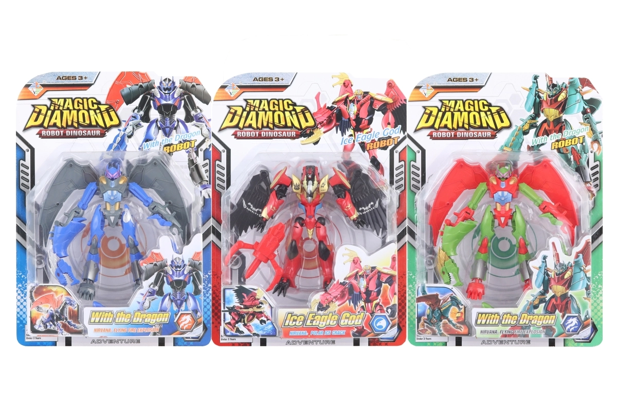 Igrača je izdelana iz trpežne plastike in je primerna za otroke od 3 let naprej. Odlično darilo za male ljubitelje robotov in dinozavrov.