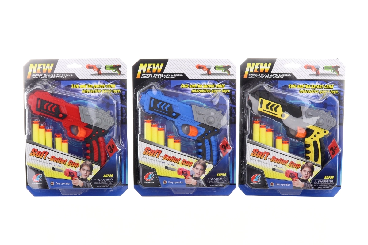 Ta lahka plastična pištola je odlična izbira za male ljubitelje akcijskih iger. Set vključuje 5 mehkih penastih nabojev s priseski, ki se zlahka pritrdijo na gladke površine in zagotavljajo varnejšo igro brez trdih izstrelkov. Kompaktna velikost orožja, približno 19 cm, dobro sede v otroško roko ter spodbuja koordinacijo in zabavno igro.