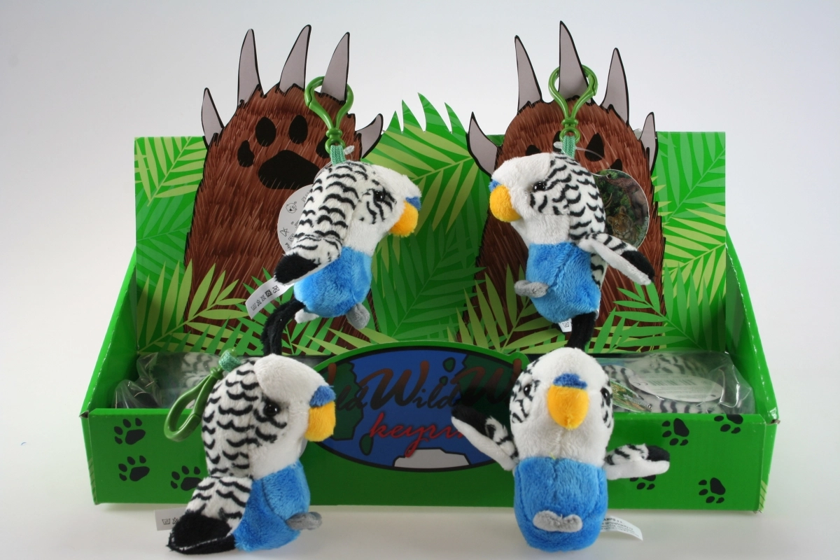 Ta bela plišasta skobčevka prinaša veselje na vsak korak. S praktičnim kovinskim obročkom jo zlahka pripnete na ključe, šolski nahrbtnik ali zadrgo na jakni. Nežen otip in dovršena izdelava zagotavljata prijeten videz in občutek na dotik.
