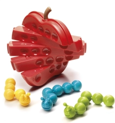 Igra Smart Games Lačne gosenice preveri vašo domišljijo in potrpežljivost. Vaša naloga je vrteti dele jabolka in upogibati tri gosenice tako, da se vse prilegajo na igralno ploščo natančno po navodilih. Vsaka uganka ima le eno pravilno rešitev, zato lahko računate na pošten izziv.