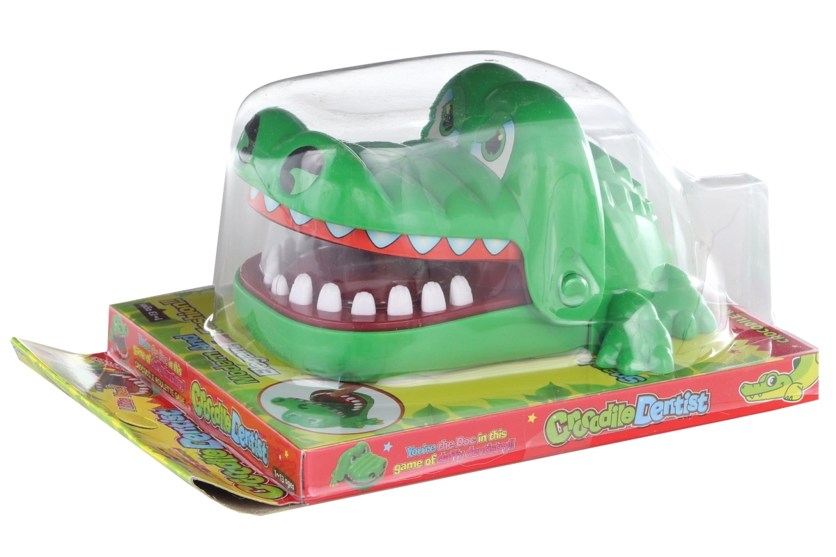 Uživajte v obilici zabave z igro, ki navdušuje tako majhne kot velike. Krokodil odpre gobec, igralci se izmenjujejo pri pritiskanju zobkov – nikoli ne veste, kateri bo sprožil zapiranje. Zmaga tisti, ki ga krokodil ne »ugrizne«. Idealno za družinsko igranje, zabave in kratke odmore.