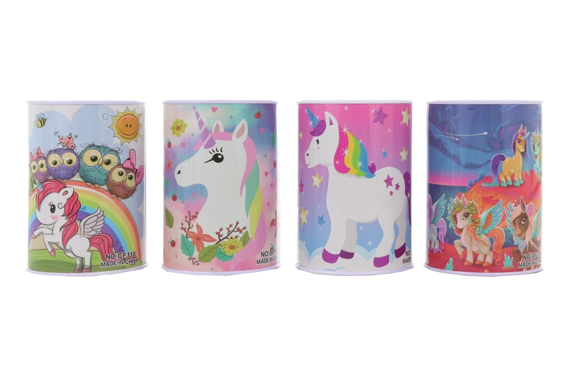 Ta pločevinasta hranilnica s čarobnim motivom samorogov je odličen pomočnik pri oblikovanju finančnih navad pri otrocih. Robustna kovinska izvedba zdrži vsakodnevno uporabo, kompaktne mere pa omogočajo enostavno postavitev na polico ali pisalno mizo.