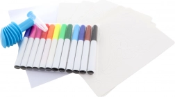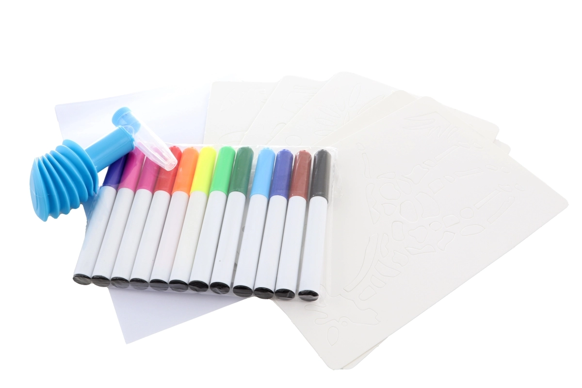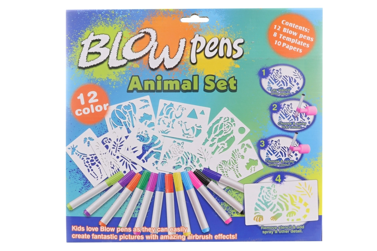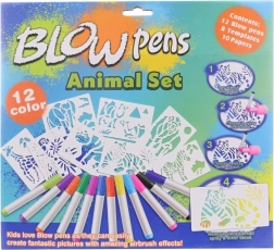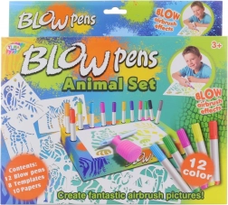 S tem velikim setom pihalnih flomastrov bodo otroci zlahka ustvarili izvirne slike z živalmi s safarija. Zahvaljujoč nastavku s pumpico ni potreben močan pih – barva se nanaša z nežnim curkom in ustvari učinkovite prehode ter senčenje. Praktičen podstavek in držalo poskrbita, da so flomastri pregledno na enem mestu.