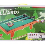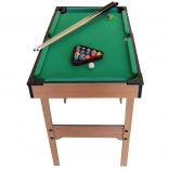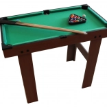 Kompaktna otroška biljardna miza v kakovostni leseni izvedbi prinaša odlično zabavo za male in velike igralce. Del pakiranja so 2 palici, 16 biljardnih krogel in celoten pribor. Zaradi svojih mer je idealna za otroško sobo in za prvo spoznavanje s pravili igre.