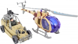 Ta realistični vojaški komplet otrokom ponuja veliko zabave in prostora za domišljijo. Helikopter ob pritisku na gumb sveti in oddaja zvoke, kar še okrepi doživetje igre. Del kompleta sta tudi oklepni avto in figurica vojaka za popolne akcijske scenarije.