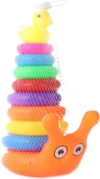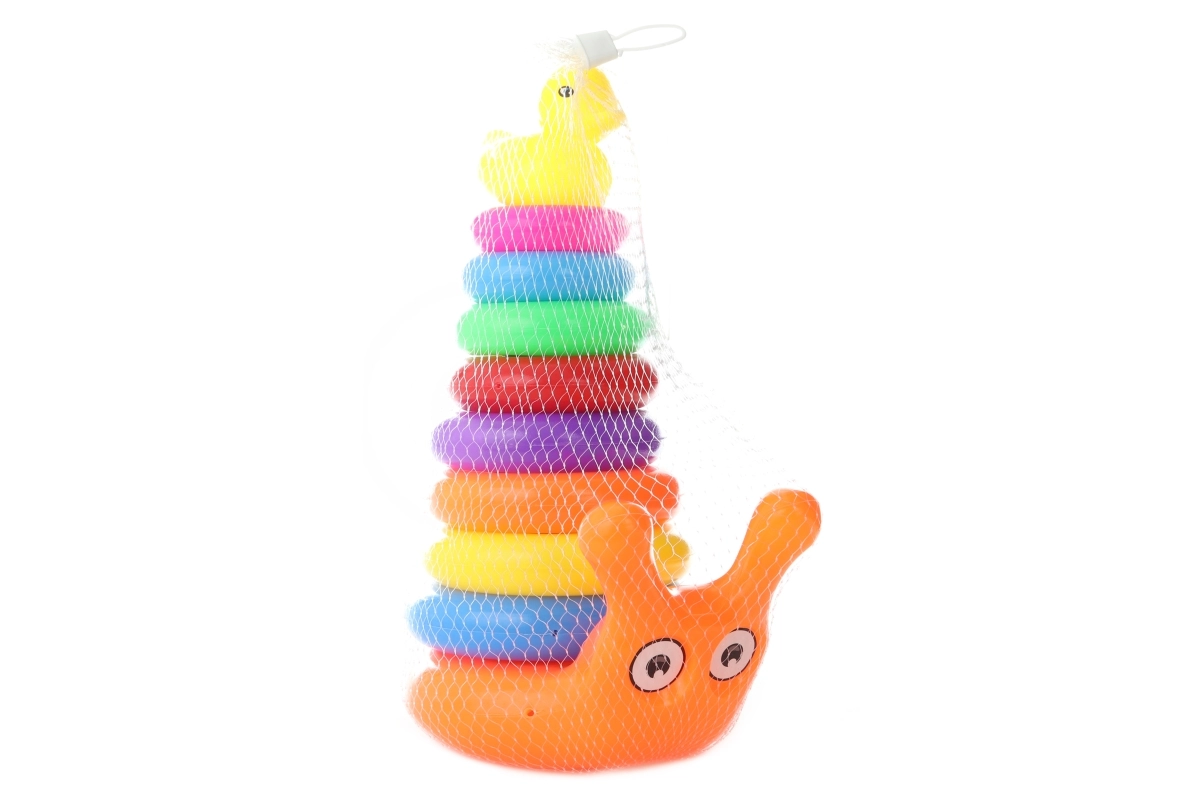 Prisrčen stolp z obročki v obliki polža bo razveselil vsakega malčka. S postopnim natikanjem obročkov si otroci vadijo potrpežljivost, logično razmišljanje in spretnost. Zadnji del je plastična račka, ki igri doda zabaven in motivacijski cilj.