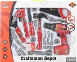 Ta bogato opremljen komplet je odlično darilo za male pomočnike v gospodinjstvu. Otroci lahko preizkusijo delo z orodjem kot pravi mojstri ter pri tem varno razvijajo spretnost, domišljijo in koordinacijo rok in oči. Baterijski vrtalnik (2× AA, niso priložene) daje igri pristnost.