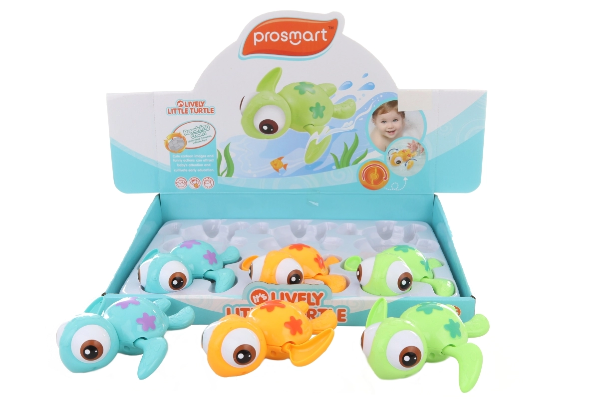 Ta ljubka navijalna želva je idealna igrača za kad, prho in otroški bazenček. Dovolj jo je naviti in opazovati, kako se sama poda na vodno dogodivščino – plava naprej in premika plavutke. Zaradi kompaktnih mer jo otroci dobro držijo in upravljajo.