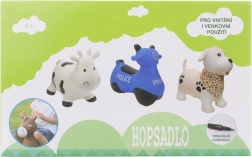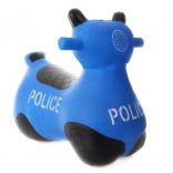 Zabavno gumijasto skakalo v obliki motorja s policijskim motivom za otroke od 1. leta. Podpira razvoj ravnotežja, grobe motorike in koordinacije, je stabilno, odporno in enostavno za čiščenje. Del paketa je tlačilka za hitro napihovanje.