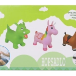 Zabaven gumijast skakač v obliki samoroga bo razveselil vsakega otroka. Ponuja stabilno sedenje, enostavno skakanje ter spodbuja gibanje in ravnotežje. Priložena je pumpica, največja nosilnost 50 kg in udobna višina sedeža 27 cm.