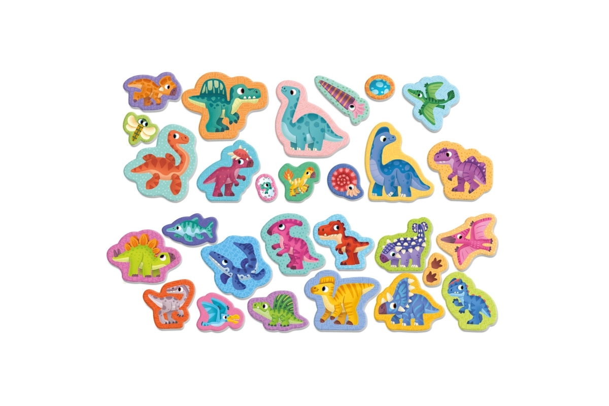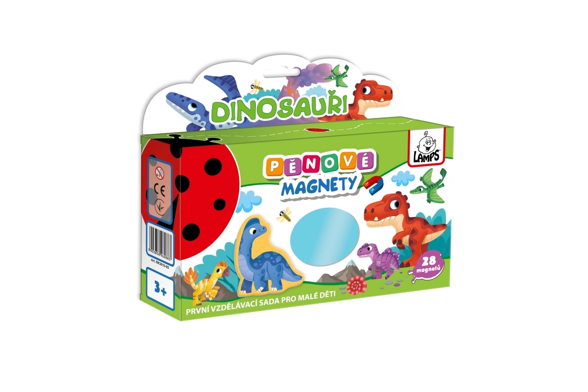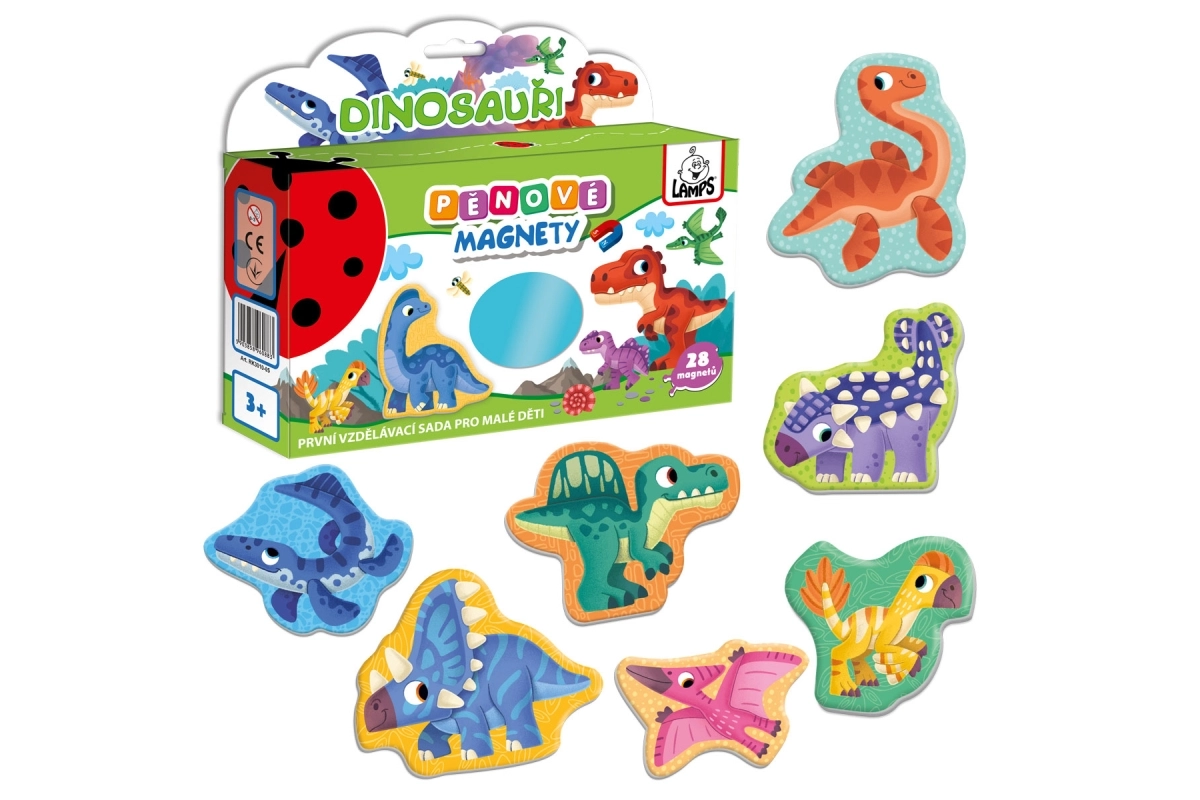 V pakiranju najdete 28 podrobno izdelanih magnetov s priljubljenimi dinozavri. Zaradi 4 mm debeline jih otroci zlahka primejo, zlagajo in prestavljajo. Peneast material je lahek in prijeten na dotik, primeren za vsakodnevno igro doma in v vrtcu.