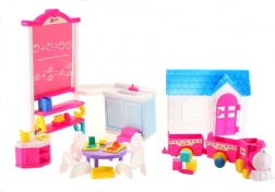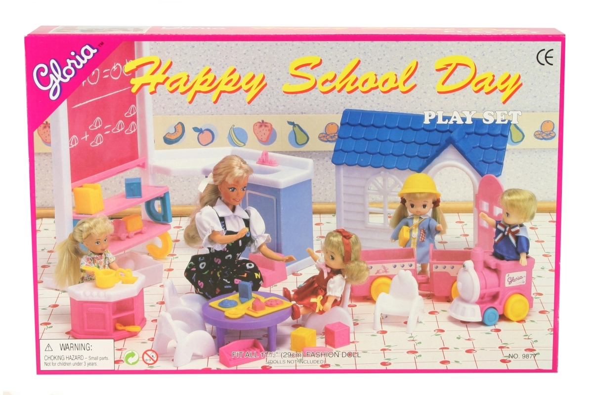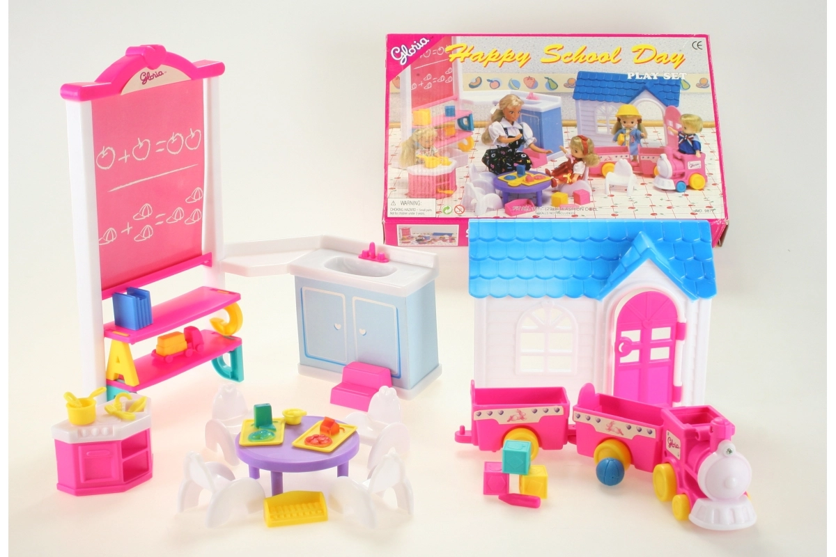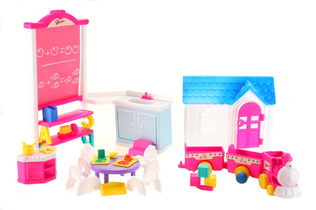 Ustvarite popolno okolje za punčke z bogato opremljenim setom Glorie vrtec. Otroci bodo vzljubili igro vrtca z realističnimi elementi, kot so tabla s policami, funkcionalen umivalnik in hišica z odpirajočimi vrati. V kompletu so tudi vlak, mizica, stolčki ter številni drobni dodatki, igrače in posodje – vse za ustvarjalne scenarije in vsakodnevno veselje pri igri.