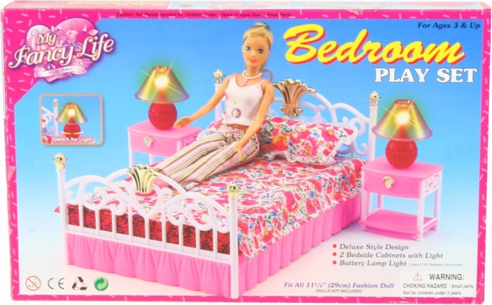 Otrokom omogočite realistično zabavo s spalnim setom za punčke GLORIE. Elegantna posteljica s pregrinjalom in mehko blazinico ustvari udoben prostor za počitek punčke, medtem ko dve nočni omarici s praktičnima predaloma ponujata prostor za drobne dodatke. Vsaka omarica je opremljena z lučko, ki ob zasuku res sveti in igri doda čarobno vzdušje.