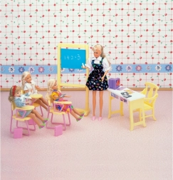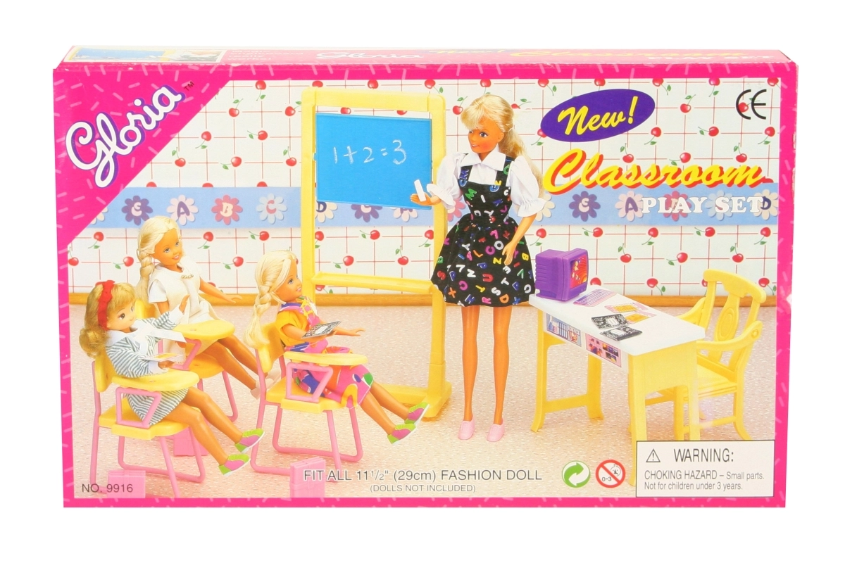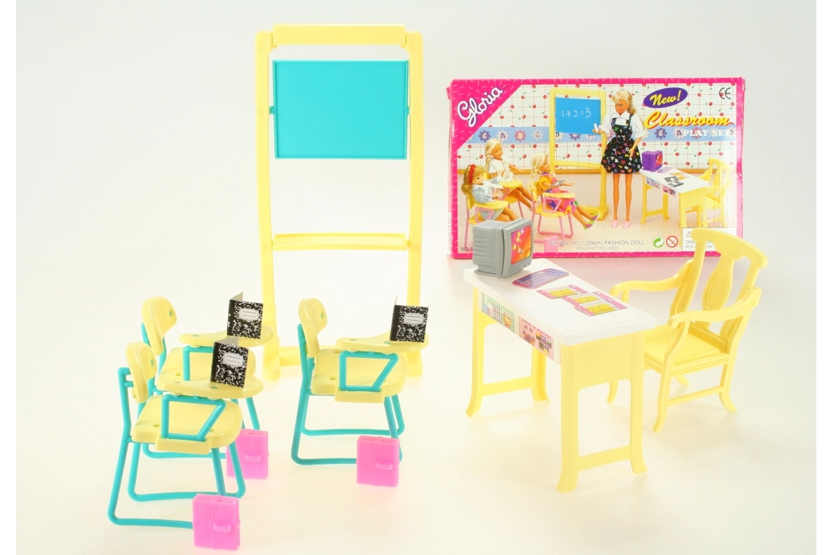 Z igralnim setom Glorie šolska učilnica lahko vsak otroški prostor spremenite v majhno učilnico. Otroci se lahko igrajo učitelje in učence, pišejo na tablo, popravljajo teste in se pripravljajo na šolo. Bogati dodatki zagotavljajo dolge ure zabave in razvoj socialnih veščin.