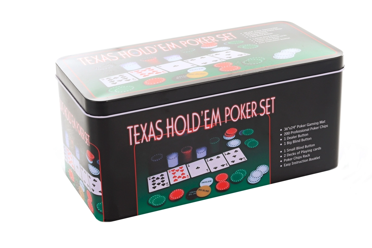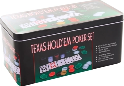 Uživajte v profesionalni izkušnji z domačim poker setom, ki vsebuje 200 žetonov in druge dodatke potrebne za igro v elegantni kovinski škatli.