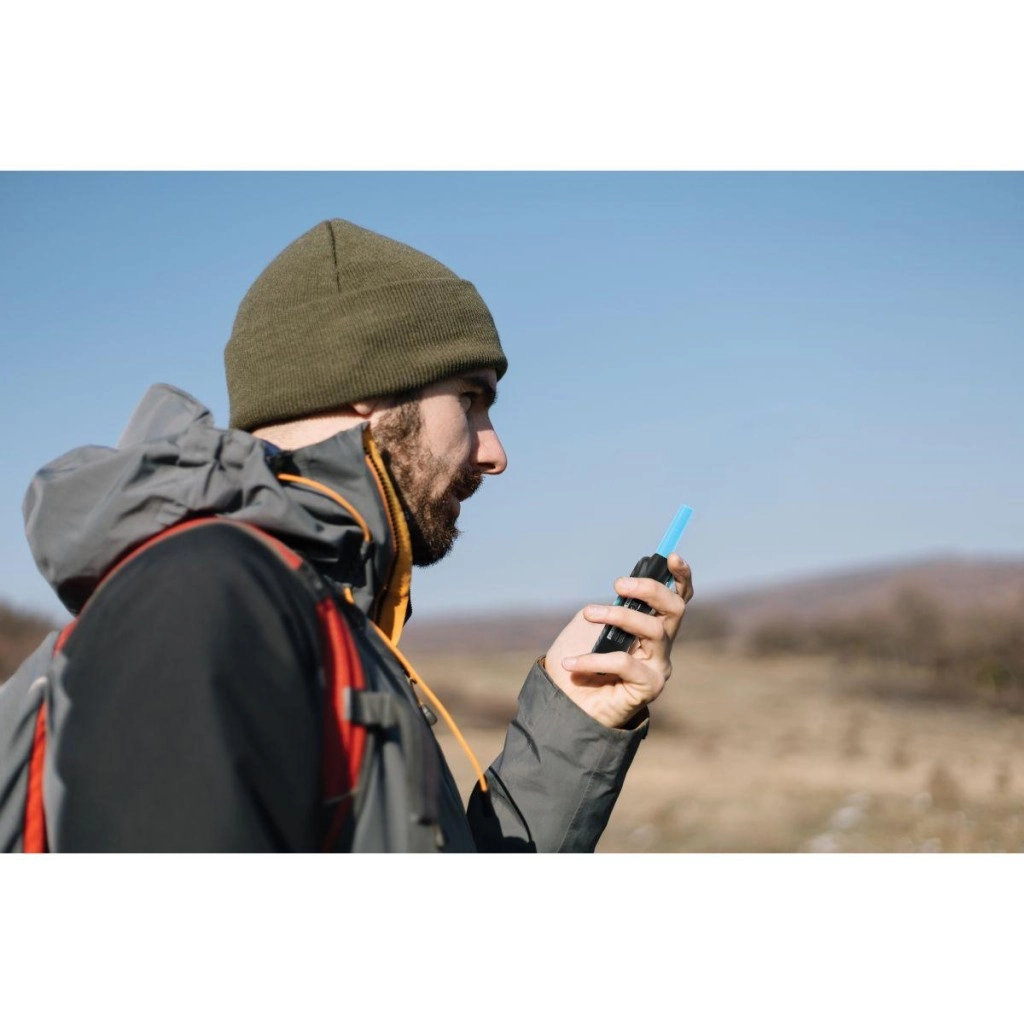 Upravljanje je preprosto in pregledno: gumb On/Off, gumb za govor, klicni ton, preklapljanje kanalov in LED-svetilka za igro v temi ali pošiljanje svetlobnih signalov. Funkcija squelch filtrira neželen šum, digitalni zvok zagotavlja jasnost, LED-zaslon pa jasno prikaže izbrani kanal. Odstranljiv sponka za pas olajša nošenje.