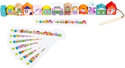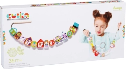 Vsebuje 13 lesenih delov s pravljičnimi motivi za zabavno nizanje.