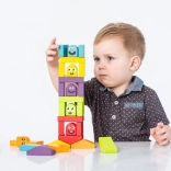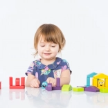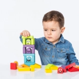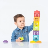 Zlaganje in gradnja stolpov iz pisanih delov trenira fino motoriko in koordinacijo ter spodbuja domišljijo in prosto igro.