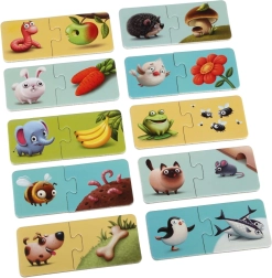 Otroci sestavijo 10 velikih parov in si na naraven način osvojijo znanje o tem, kaj posamezne živali jedo – zabavno, smiselno in brez dolgčasa.