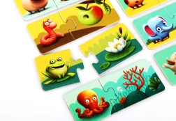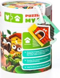 Potopite se v igrivo učenje s puzzlami Puzzlika Moj dom. Otroci povezujejo sliko živali z njenim tipičnim bivališčem ter si naravno razvijajo logično mišljenje, besedni zaklad in koordinacijo oko–roka. Veliki, enostavno oprijemljivi kosi so idealni za majhne ročice.