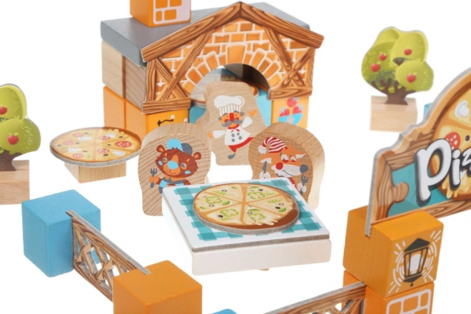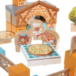 Lesena gradbeni komplet Picerija znamke Cubika ponuja otrokom možnost, da se potopijo v svet domišljije in čarobnega kulinaričnega vzdušja picerije. Skupaj vsebuje 30 lesenih delov in 12 kartonskih tematskih dodatkov. Vse je izdelano iz kakovostnih in varnih materialov, ki izpolnjujejo stroge evropske standarde.